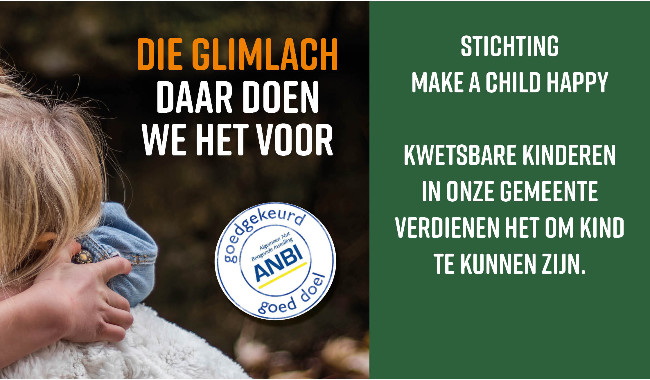 <p>Stichting Make a Child Happy Haarlemmermeer, zet zich in voor het kwetsbare kinderen binnen onze Gemeente. Kinderen rond de armoede grens. In de zomervakantie bieden wij 40 kinderen een belevenis vakantie aan. Omdat zij het verdienen! Ieder kind verdient het om kind te kunnen zijn, om lichtpuntjes te zien aan de horizon, in moeilijke periodes even op adem te komen. We gunnen de kinderen een leuke korte vakantie met leeftijdsgenoten, gewoon even lachen en lol maken en plezier hebben, het resultaat van dit Project draagt bij aan het verhogen van levenskwaliteit. Gezondheidsbevordering door Beweging en Ontspanning. Wij geven aan dat deze belevingsvakantie een meerwaarde is voor het kwetsbare kind.</p>